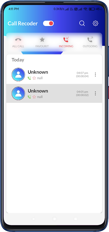 Auto Call Recorder application can be used as a voice recorder and auto call recording. Call Recorder: Automatic Call Recorder can automatically start audio recording when the user receives or make a phone call.