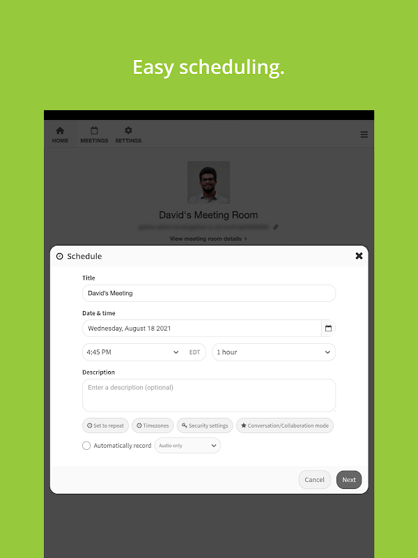 深个性化,使您的会议环境,独特的,因为你的签名,既自定义音频和视觉组件。高清晰度音频和视频能够清晰的沟通仅次于亲自见面。