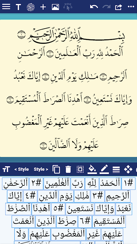 - 使用 Mishafi Gold 或 Silver 字体插入古兰经文本并进行搜索(完整的古兰经可通过应用内购买获得)。