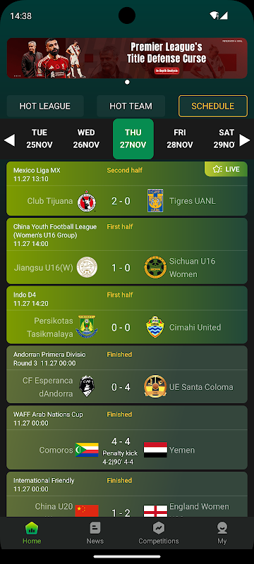实时足球资讯,触手可及!关注实时比分、深入了解详细数据,并掌握即将到来的比赛——一切尽在一处。无论您是铁杆球迷,还是只想关注您喜爱的球队,这款应用都能满足您与精彩比赛保持联系的一切需求。