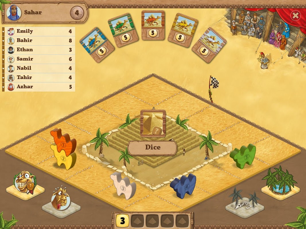 Witness the craziest camel race of all time, as things really go topsy-turvy when camels stack up and entire pyramids turn upside down. As members of Egyptian high society, you gather in the desert with one simple goal: to gain the most money by backing the right camel to win a leg or even the entire race. However, in this race, it’s not just the lucky ones who can beat the odds. Reading the dynamics of the race and having a good sense of timing is just as important when it comes to backing the right camels and taking the victory.