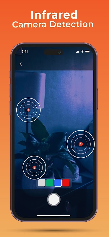 - 该应用程序将发出警报,并在检测到的任何隐藏摄像头周围显示一个红色圆圈。