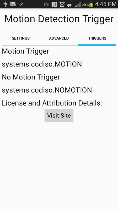 The Camera Motion Trigger app uses the camera on Android devices to detect motion with in the camera's view. When motion is detected a broadcast message is sent out that can be used to trigger activities on other apps. This app can be used in conjunction with automation apps to turn your Android device into a motion sensitive digital picture frame, a video surveillance system, capture time lapse images, create a video intercom system for your front door, or any other application where motion detection is required. For detailed instructions and tutorial visit http://www.codiso.systems/camera-motion-trigger-app/