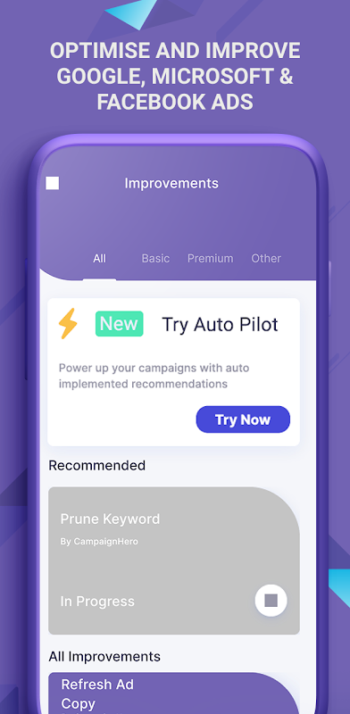 Improve your digital marketing campaigns step by step with a simple chat interface which will guide you to success. All the best campaign optimisations, techniques and suggestions straight to your CampaignHero messenger