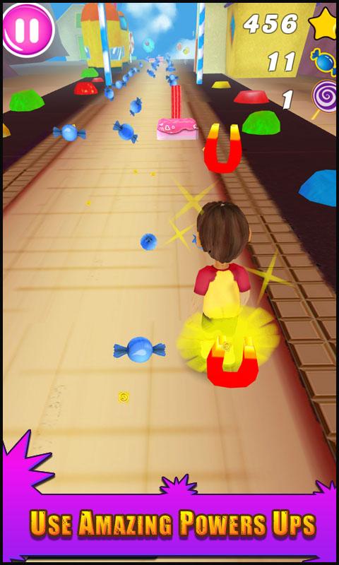 In this Candy Rush 3D game collect all the candies and Unlock sweet achievements & powerups, so that you can upgrade new avatars & costumes to run down the candy path and feel the real 3D environments and jelly themes. Run, dash, jump and slide over there are many obstacles on the way of the path in this crazy new endless running game!