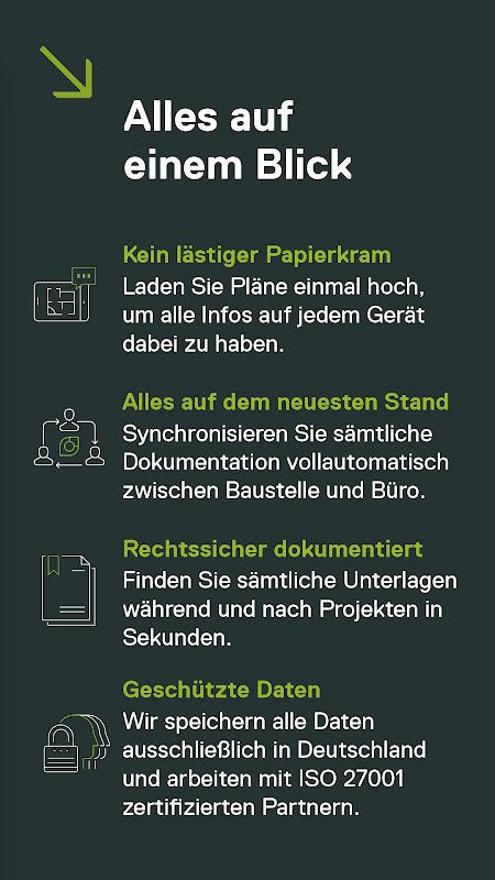 直观的施工进度表和方便的仪表板一目了然地显示您的截止日期和约会,因此您可以成功避免延误并按时完成项目。