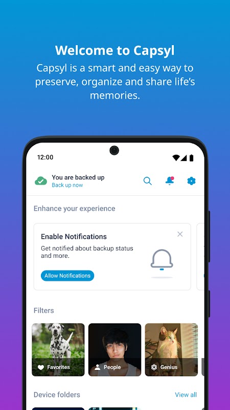 • 无需费力即可重温美好回忆 - Capsyl 会自动标记照片和视频中的人物和物品,让您轻松找到所需内容