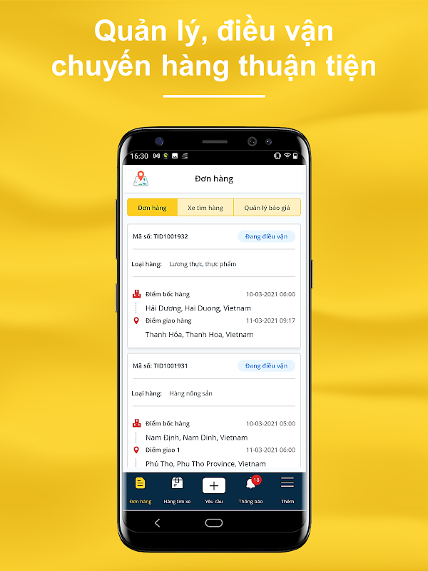 - Thuận tiện quản lý xe tải, tài xế và các chuyến hàng đang nhận