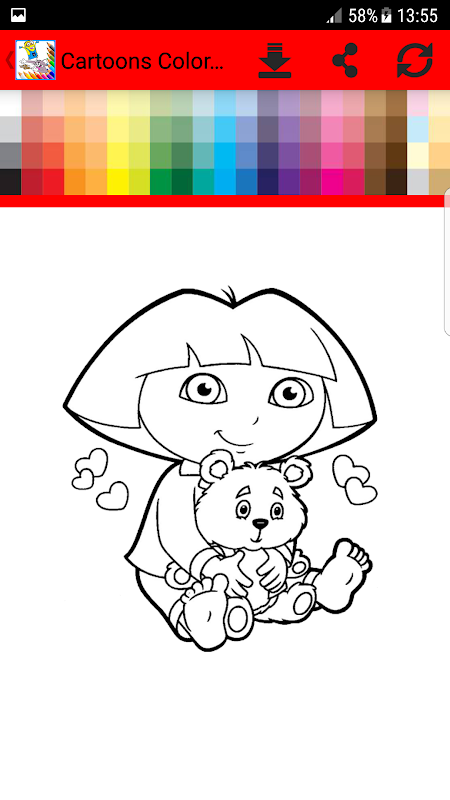 Cartoons coloring book is a coloring game that is both educational and fun. This game is for all people, girls or boys, attracted by the coloring of the cartoons and finding pleasure by coloring the smurfs, Dora and Diego, Tom and Jerry, Peppa Pig, Hello kitty and many others.