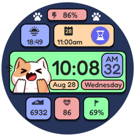 适用于 Wear OS 的猫主题表盘。