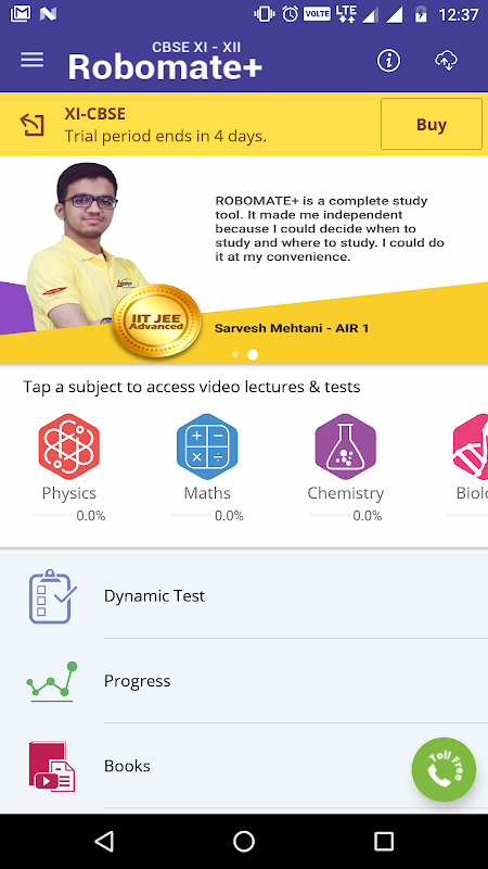 "Robomate+ (Robomate Plus) is the world’s largest curriculum based exam preparation app for students. Irrespective of students going for tuitions or coaching classes, this learning app provides help in studies and solving question papers better for CBSE Board curriculum (Higher secondary Certificate) exams. It covers Class 11th, Class 12th science curriculum. It also provides an integrated study package for the preparation of IIT JEE Main, IIT JEE Advanced (Engineering Entrance Exams), NEET (Medical Entrance Exams), AIIMS Entrance Exam, which is focussed towards achiving better ranks in the entrance exams, which follow CBSE syllabus prescribed in NCERT books.
