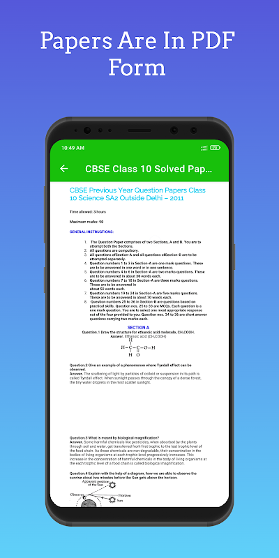 此应用程序包含 CBSE 第 10 级过去 10 年已解决的试卷