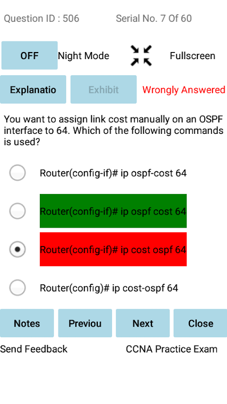Review feature after taking simulated exam allows you to understand the incorrect answers and explanation for the question.