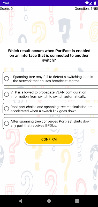 该应用程序包含 1000 多道练习题,每道题都经过精心设计,涵盖了 CCNA 200-301 考试涵盖的所有主题和子主题。这些问题分为不同的难度级别,因此用户可以逐渐从较简单的问题升级到更具挑战性的问题。