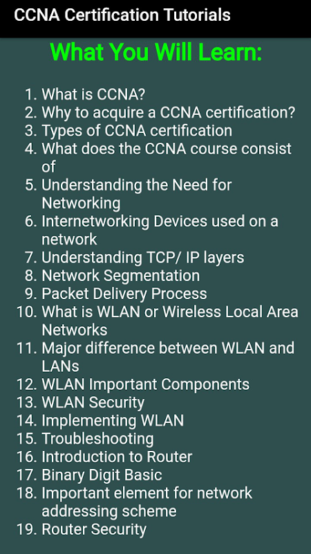 APKPure 使用签名验证功能,确保为您提供无病毒的 CCNA Certification Tutorials APK 下载。