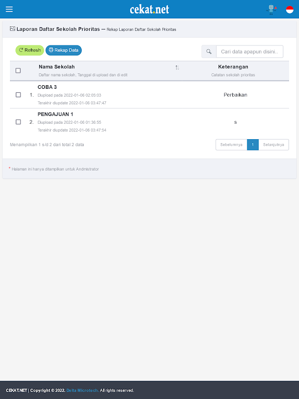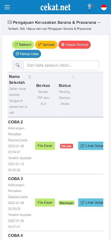 Aplikasi CEKAT (Cahaya Edukasi Lahat) merupakan sistem informasi yang berguna untuk mengumpulkan dan menampilkan berbagai informasi data pendidikan seluruh sekolah dasar dan sekolah menengah pertama di kabupaten lahat.