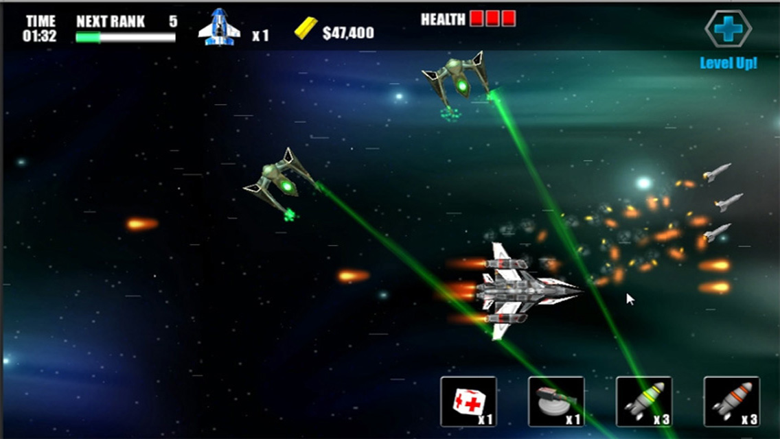 2050 年,敌对的外星人将入侵地球,以终结人类!你是人类生存的最后希望。踏上冒险,穿越一些最危险、最美丽的太空部分,摧毁外星人的威胁,确保人类的未来。