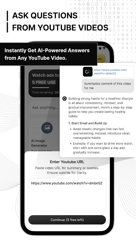 观看更智能,而不是更长时间!直接通过 YouTube 视频提出任何问题,并立即获得准确、清晰的答案,从而节省您宝贵的学习时间。