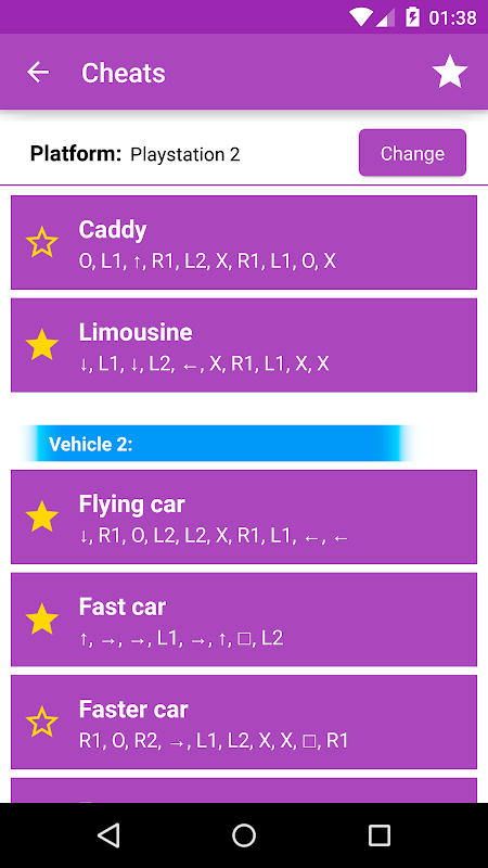 In this app you will find all cheats and codes for GTA Vice City for Playstation 2, Xbox and PC. You will also find one button to save your cheats in favourite, and later you will be able to see it very fast.