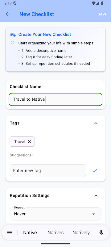 智能重复:将清单设置为每天、每周、每月、每年或从不重复。非常适合您经常使用的习惯、重复任务或装箱单。