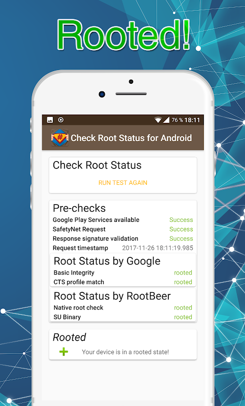 “使用SafetyNet来检查Android的根目录状态”是一款非常易于使用的Android根目录检查应用程序。 Root Checker应用程序可以使用Google提供的受信任的SafetyNet API进行验证。您也可以使用RootBeer知道状态。对您的android设备进行多次root检查可以让您正确验证手机是否已正确扎根。不再询问“我的手机是否已扎好了?”,“安装了超级用户?”之类的问题。