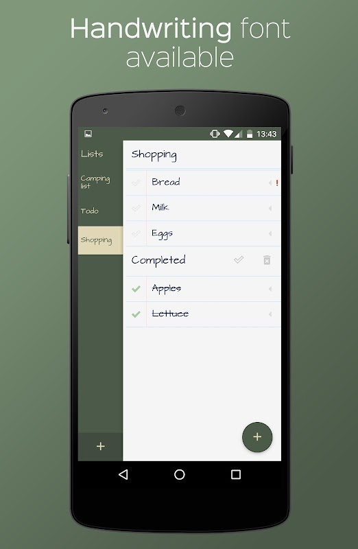 这个应用程序的目标是简单,快速和易于使用。该应用的最频繁使用的功能可以由单个抽头来实现,例如添加项的列表,列表之间改变,并检查了在列表中的项目。