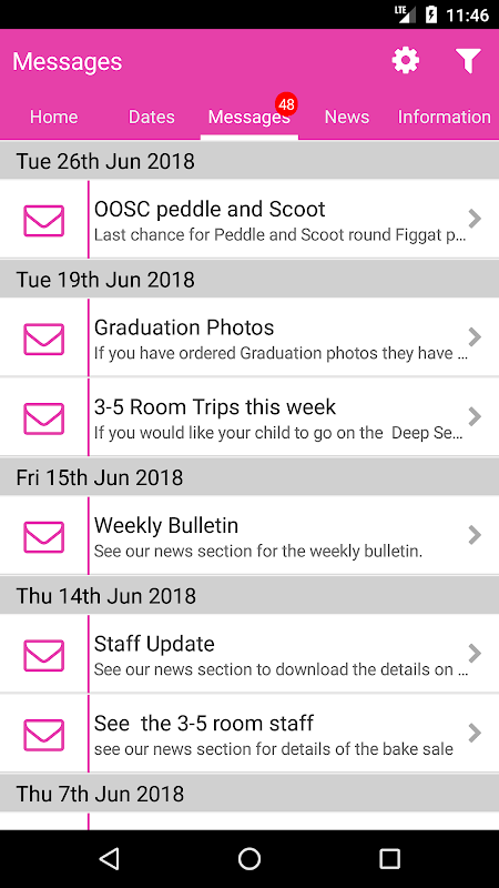 Shows all the latest stories from your nursery If you tap on any news item you will be able to see more detail.