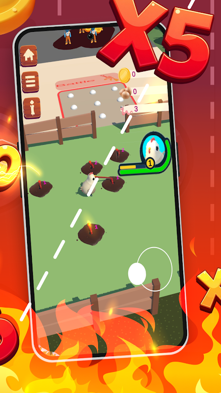 控制一只聪明的小鸡,开启一场野外农场冒险!收集虫子喂养巨型母鸡,并获得鸡蛋作为回报。孵化战斗小鸡,与农民战斗,并在危险区域赚取金币。提升速度、生命值和奖励。制定巧妙的计划,不断壮大,带领你的羽毛军团走向胜利!