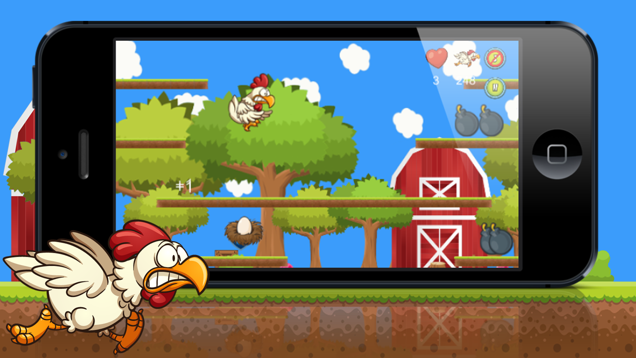 Help Chicken Run and fly and save chicken eggs and her animal friends. Help chicken in its saga to reach its eggs, get back to farm and become it's farm hero !