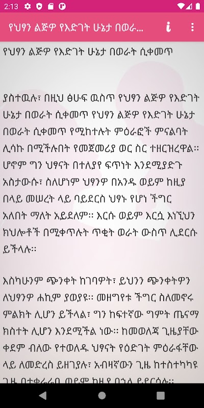በዚህ አፕልኬሽን ውስጥ የተካተቱት መረጃዎች ሁሉንም ጨቅላ ህጻናት የሚቫጓቃ ነገር ግን እባክዎን ልጅዎ ልዩ መሆኑን እና የተለየ ጥያቄ ቢኖርዎት፥ የህጻናት ሐኪምዎን ይጠይቁ።