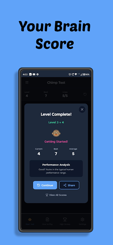 这款游戏以科学为依据,灵感源自震惊世界的认知研究,挑战你的工作记忆。这款应用基于京都大学松泽哲郎博士的开创性研究,重现了幼年黑猩猩通常胜过成年人类的记忆任务。