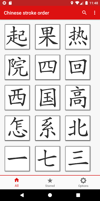 所有字符都带有动画,该动画显示了笔画的顺序。每个字符还带有定义,拼音发音,词源和多个句子。