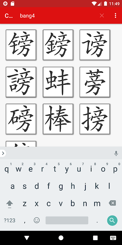 所有字符都可以在列表中轻松访问,或者可以通过搜索功能找到,该功能使您可以搜索拼音(带有或不带有音调)或字符本身。