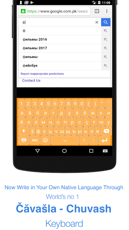 Chuvash Keyboard allows you to type your messages, update your status on social networks or compose emails in your own native Chuvash language on your Android phone.
