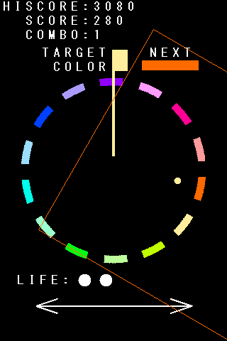 Please operate a skillful circular bar, hit against the target color continuously, and aim at a high score.