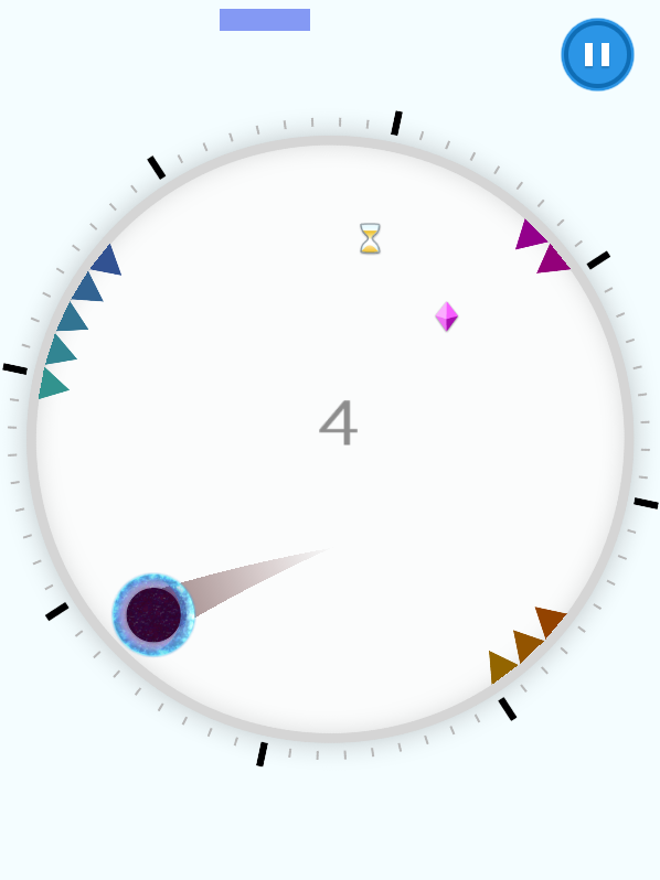 Rotate a shape with a ball in it around its axis. It's bouncing off the walls of the shape. Help the ball avoid spikes. Train your reaction speed and attentiveness in this addictive game for Android. Your task is to get the ball to jump inside the shape for as long as possible. It's not that simple, because the inner walls of the figure have spikes. Rotate the play field so that the ball doesn't touch spikes.