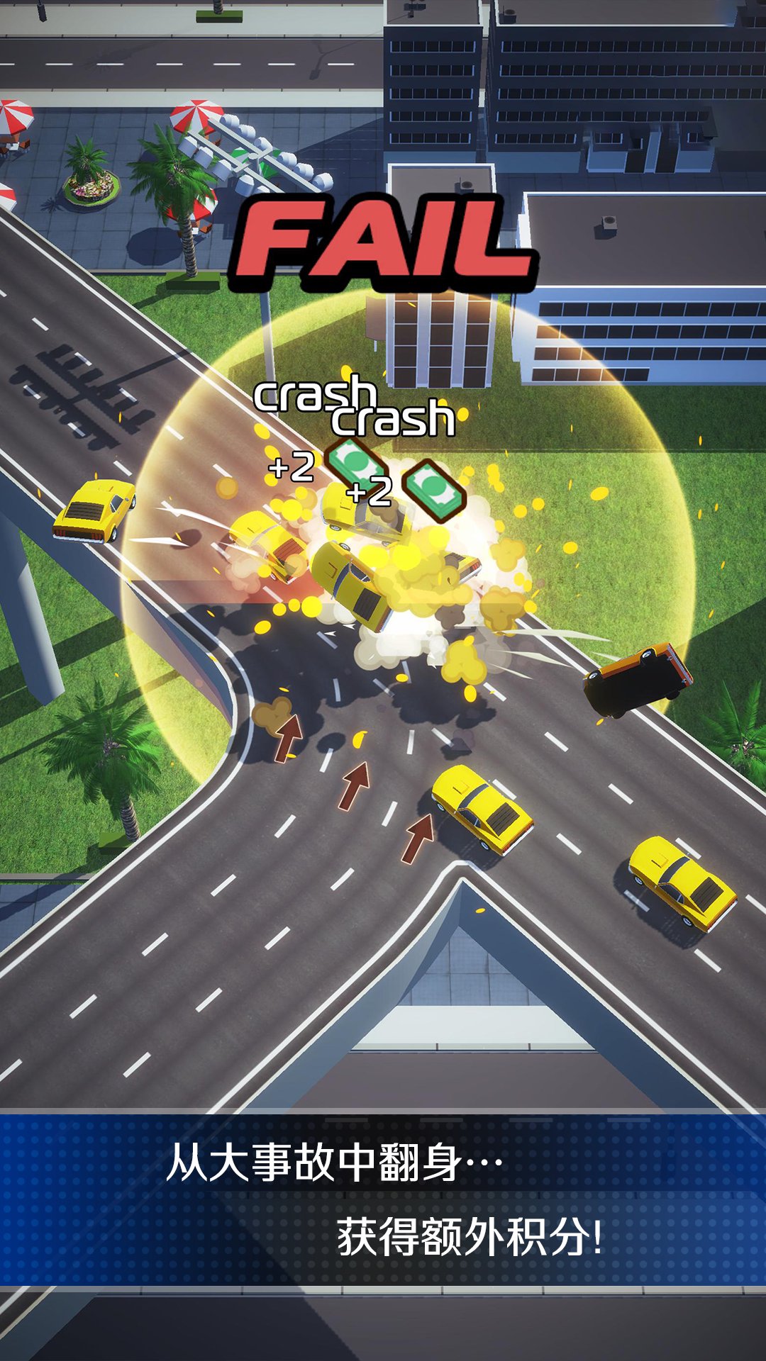 极限擦身而过可获得额外积分!即使发生碰撞也无须担心,因为还能获得撞击积分!成功达成全车连锁撞击,则能拿下更多额外积分!