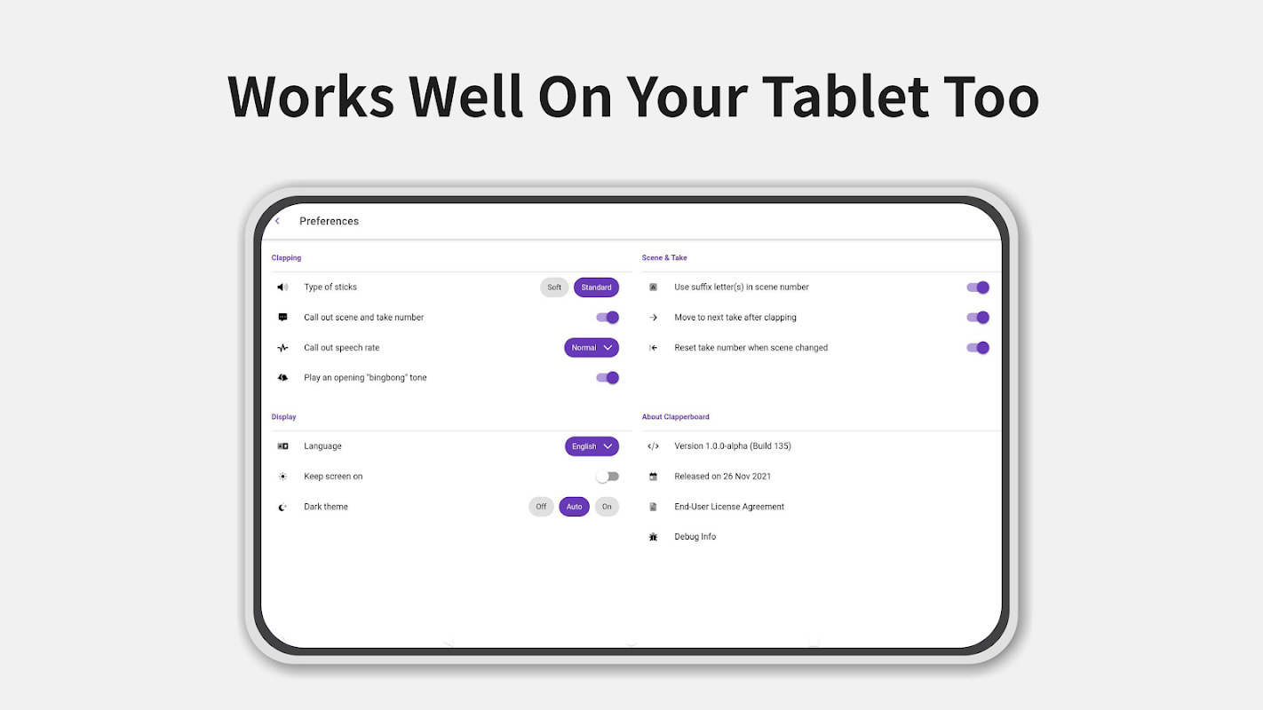 场记板是来帮你的,而不是要夺走你的焦点。不论是在热辣阳光的海滩拍摄,还是在星辰下讲述浪漫故事,开启或关闭暗色主题来适应周围环境。