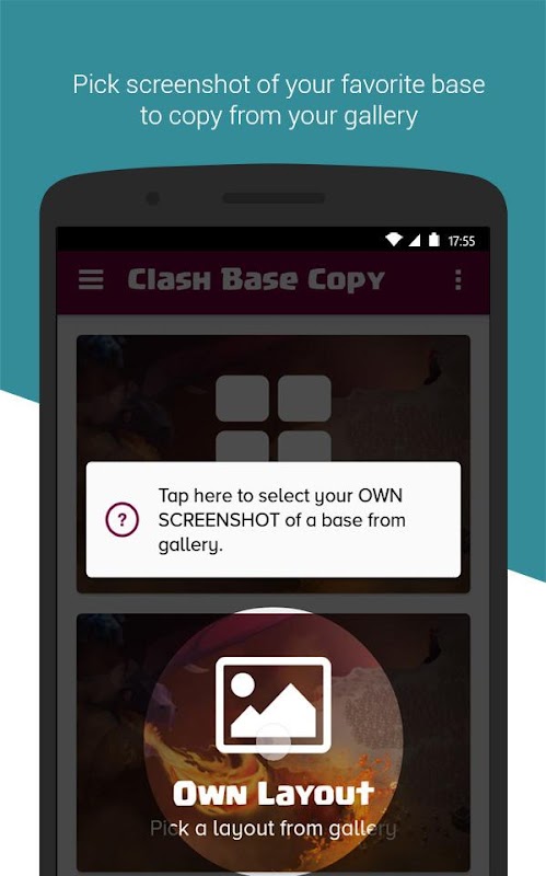 Now you can easily copy any base layout design you like. Just take a screenshot of that base, and then Select that screenshot from our App. The base layout will be floating over the screen. You can then go to Clash of Clans Layout designer and use the floating screenshot as a tracing paper!