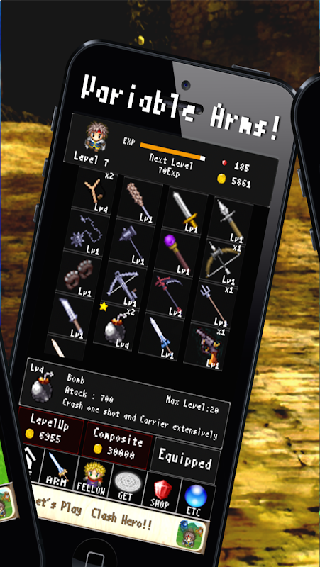 Get the most powerful arm and gather fellows. And save the princess to defeat strong monsters and dragons!