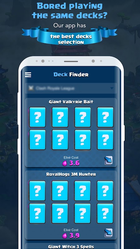 🔹 Tops List:关注您最喜欢的玩家并跟踪他们的进度,像专业人士一样玩游戏并将他们的套牌直接从应用程序复制到 Clash