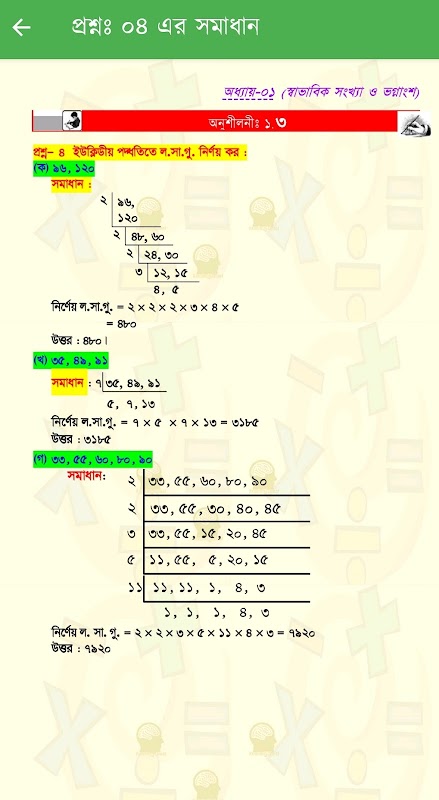 - প্রতিঅনুশীলনীরপ্রতিটিপ্রশ্নের পৃথক/আলাদাসামাধান।