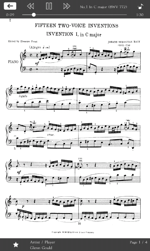 - Music Sheet page display