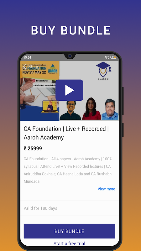 Classo是印度第一家辅导班市场。通过Classo,学生可以直接从他们最喜欢的,最著名的教练课程中以OTT方式流式传输录制的视频和实时视频讲座!我们目前在11、12,CA,CS,CMA,BCOM,MCOM开设课程,并且每天都会增加更多课程!