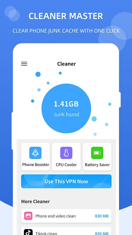 手机清洁器可以清理手机中的缓存文件、RAM 等。这款清洁器可以释放更多空间,提高手机速度和性能,这是一款自动清洁器,通过设置清洁时间及时清洁手机