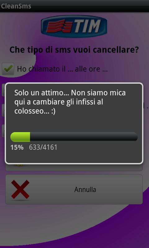 Volete cancellare gli sms noiosissimi dei vostri operatori? Tipo “Hai ricevuto una chiamata da..” oppure “Sono di nuovo contattabile.. ChiamaORA!” che si sommano nella tua rubrica SMS? Clean SMS pulisce automaticamente questi tipi di messaggi in modo completamente automatico dalla tua rubrica.E' disponibile per gli operatori TIM, VODAFONE, WIND,NOVERCA, TRE, POSTE MOBILE. Se volete che il programma cancelli altri tipi di messaggi, contattatemi pure, sarà un piacere implementare la vostra richiesta.