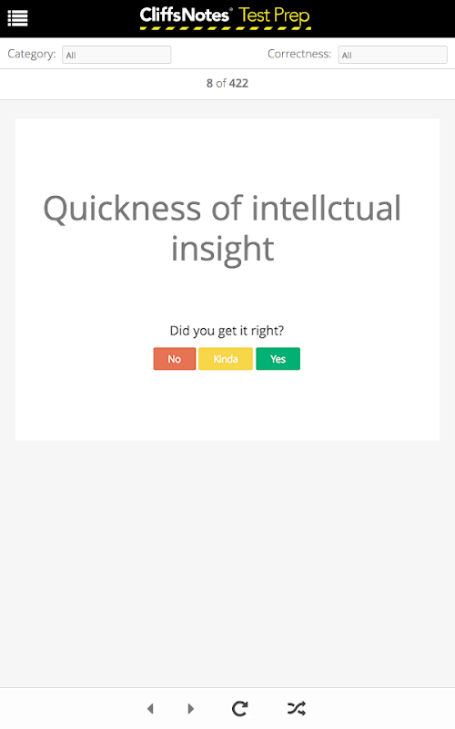 Note: This app is intended only for students who purchased a CliffsNotes® Test Prep course. Without course access, this application will not work. For more information and to purchase a course, please visit our website.