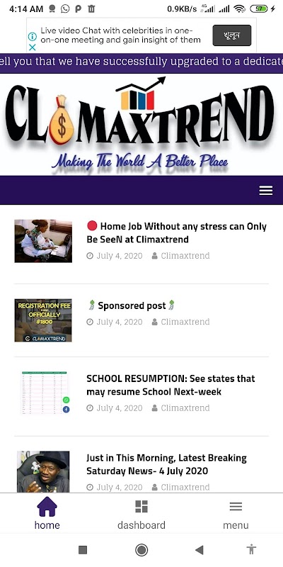 Climaxtrend(CT)是一个社交论坛平台,您可以在其中阅读不同类别的重要信息中的更新信息,而不仅仅是新闻平台,还可以阅读更多内容,因为您可以从该平台中获得阅读和评论所读新闻的收益。这个想法是赋予年轻人力量,给我们带来鼓励。