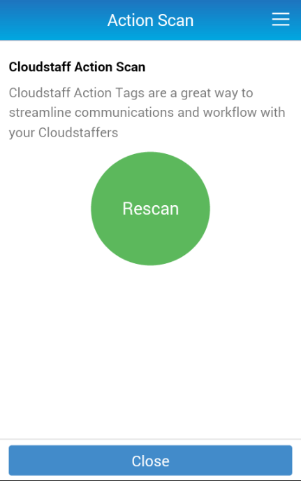 The Action Tag Scanner is designed to scan Action Tags stickers which are available from the http://www.ActionTag.io web site. You can login to the ActionTag.io website and define the event that occurs when an ActionTag is scanned. Supported events include:- Send an SMS, Send an Email or Redirect to a Web Site