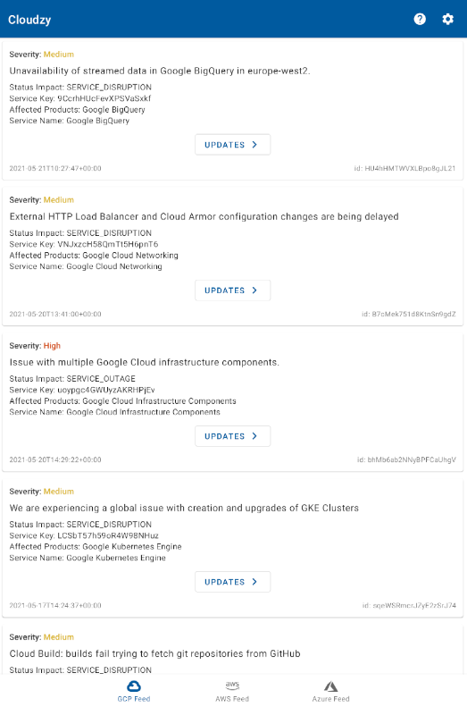 Cloudzy is a free and open-source app that gets you the latest alerts for major cloud providers and displays them in an easy-to-read manner. We provide tailored notifications for the cloud providers you care about the most.